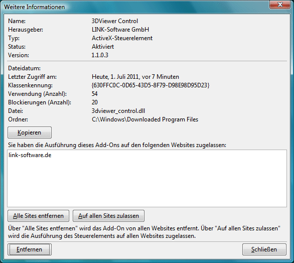 If you want to remove the 3DViewer ActiveX Control for Microsoft Internet Explorer under Microsoft Windows again, please proceed as follows to ensure a complete deinstallation of the control (Please note: The screenshots are in German language at the moment - we apologize for the inconvenience.):